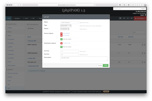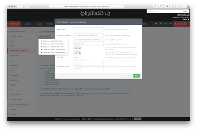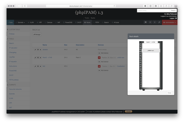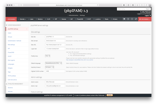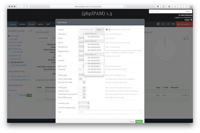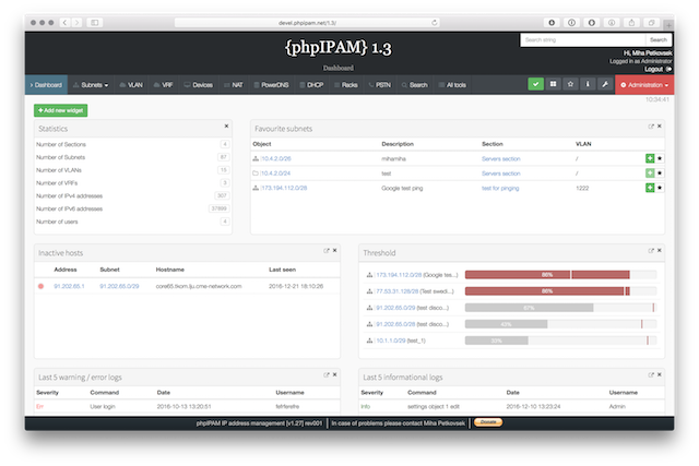 Below are some screenshots form latest release. You can see latest release of phpipam in action by visiting http://demo.phpipam.net !